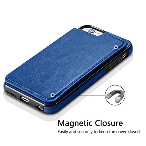 UEEBAI Custodia per iPhone SE 2022 5G/iPhone 7/iPhone 8/iPhone SE 2020, Custodia in pelle PU [Due chiusure magnetiche] [Slot per schede] in TPU Wallet Cover per iPhone SE3/SE2 - Blu