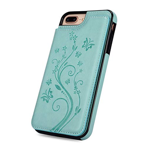 UEEBAI Custodia per iPhone 6/iPhone 6S, Custodia in Pelle PU di Lusso [Due Chiusure magnetiche] [Slot per schede] Funzione di Supporto Posteriore in TPU Flip Wallet Cover - Goffrato Vert