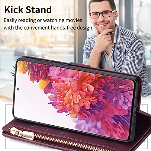 UEEBAI Custodia per Samsung Galaxy A12 5G, Portafoglio in Pelle PU Retro Antiurto Flip Cover Antiurto con Slot per Schede Funzione Stand Chiusura Magnetica - Diamante Rosso