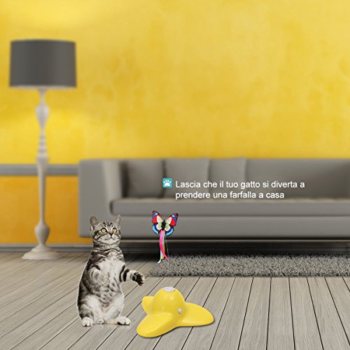 La base è unica e bella, e la farfalla sembra reale. L'azione di spinta stimola gli istinti naturali del gatto e mantiene i gatti indovinando.