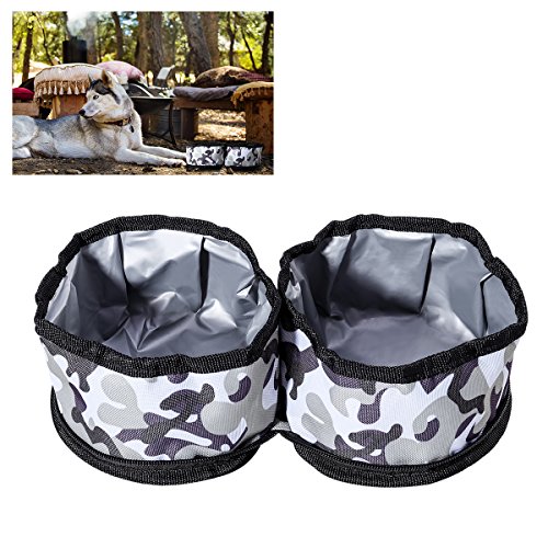 UEETEK 2PZ Ciotola Pieghevole per Cane, Mangiatoia Abbeveratoio Portatile in Silicone Alimentare con Gancio Porta Acqua, Alimenti da Viaggio per Cani, Gatti, Animali Domestici