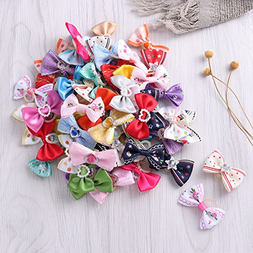 UEETEK 60 Pezzi (30 Paia) Carino Cucciolo di Cane Piccolo Bowknot Archi con Elastici Accessori per Capelli Fatti a Mano Arco