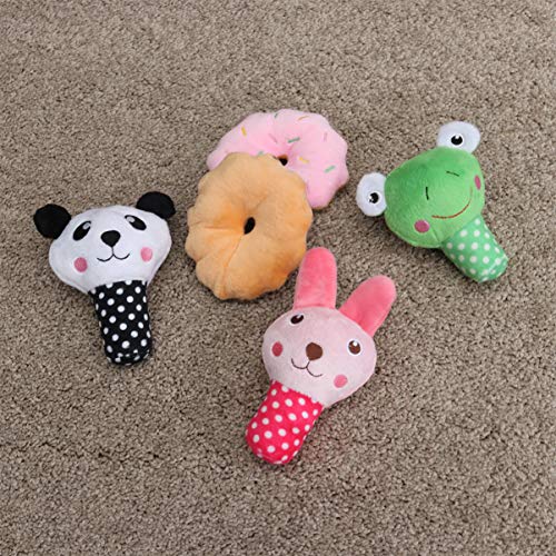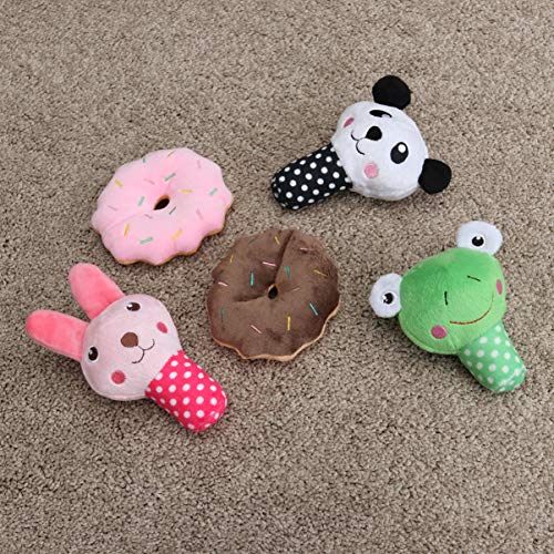 Ueetek 5 pezzi peluche cane giocattolo Squeak, cane da masticare giocattolo con effetti sonori per animali Formazione (rosso ciambella Donut di caffè + + Giallo Pulcino + PANDA + Coniglio Rosa)