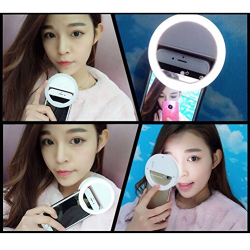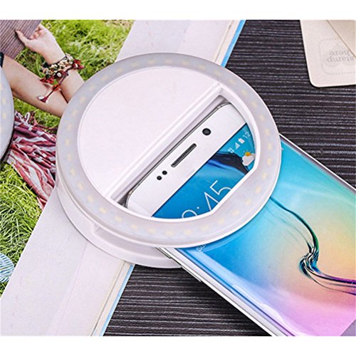 UEETEK Selfie Luce Anello LED Clip on Flash Macro Ring Light per iPhone Android Smartphone Bianco
