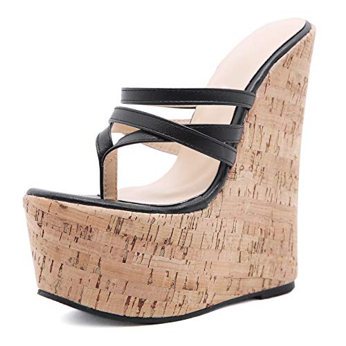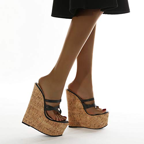 UELEGANS Sandali Donna Ciabatte Mules Zeppa Estive Eleganti Espadrillas da Plateau Spiaggia Open Toe Cross Fascia Tacco, 35-42,41