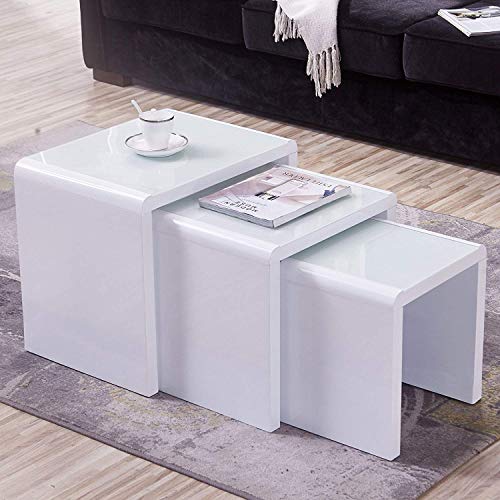 Uenjoy, tavolini a incastro (bianco/nero), White+white glass, White Glass 21.6"