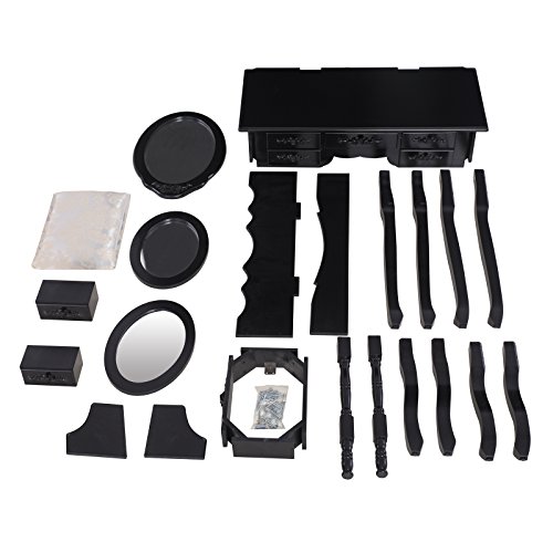 UEnjoy, toeletta nera con sgabello, 7 cassetti e 3 specchi ovali per camera da letto