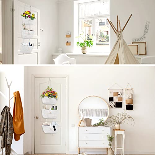Uennm Organizer da parete per porta, organizer da appendere, con 3 livelli, in corda di cotone, per soggiorno, camera da letto, bagno, cameretta dei bambini (bianco)