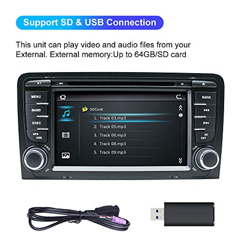 UEYUAN per Audi A3 S3 RS3 7" Lettore Dvd per Auto Radio Stereo Sistema GPS Lettore multimediale per Auto con Telecamera Posteriore Mappa