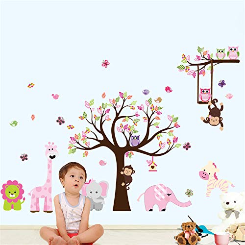 Ufengke Adesivi Murali Animale Albero Adesivi Muro Elefante Giraffa per Camerette Bambini Asilo Nido Casa