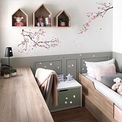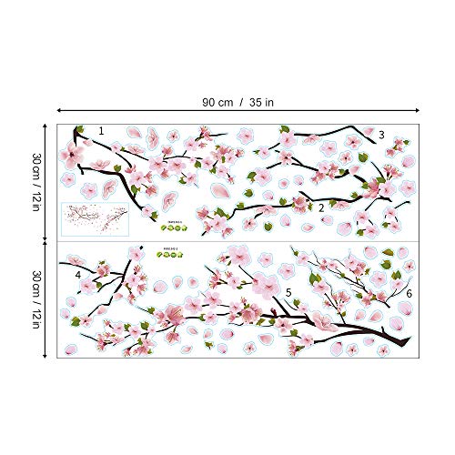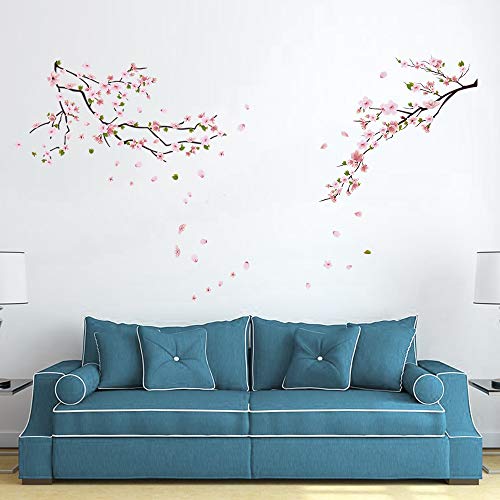 Ufengke Adesivi Murali Fiore di Pesco Adesivi Muro Ramo di Albero per Camera da Letto Soggiorno Decorazioni Parete