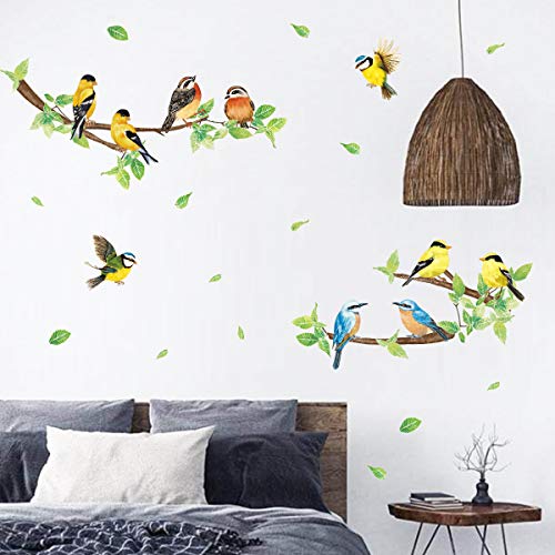 Ufengke Adesivi Murali Uccelli Robin Adesivi Muro Ramo Albero per Camera da Letto Bambini Soggiorno Asilo Nido Decorazioni Parete