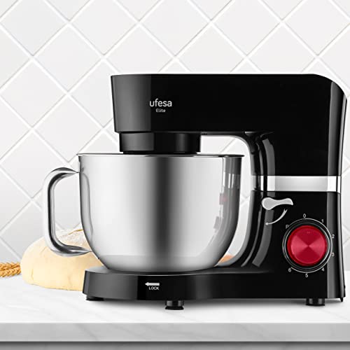 Ufesa Elite Noir, Impastatrice Planetaria, Robot da Cucina, Ciotola di Acciaio Inossidabile 5,5 litri, Manico Ergonomico, 6 Velocità + Turbo, 1400 W, BPA Free, Esclusiva Amazon