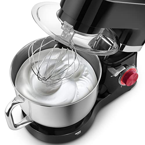 [POTENZA, ERGONOMIA E MATERIALI DI QUALITÀ] Potenza di 1400 W, 6 velocità + turbo, recipiente in acciaio inossidabile con sistema planetario da 5,5 litri e con manico ergonomico che permette di sostenere e muovere facilmente il recipiente. Elite Noir possiede ingranaggi interni di metallo che la rendono una impastatrice planetaria robusta e solida, adatta a funzionare per periodi di tempo prolungati. Dotata di coperchio rimovibile paraspruzzi, consente mantenere una perfetta pulizia in cucina. Il foro presente sul coperchio permette diaggiungere ingredienti durante il funzionamento senza bisogno di aprire la planetaria