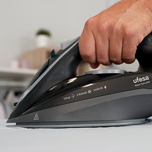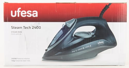 Ufesa Steam Tech 2400 Ferro a Vapore 2400 W, Colpo di Vapore Max 120 g, Vapore Costante 0-30 g/min, Piastra in ceramica, Doppio Sistema Anticalcare, Salvagoccia, Nero, Esclusiva Amazon