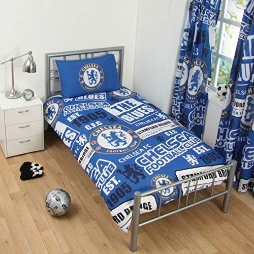 Ufficiale Chelsea FC Blu Design del Logo Toppa Singolo Piumino E Cuscino Set Singolo