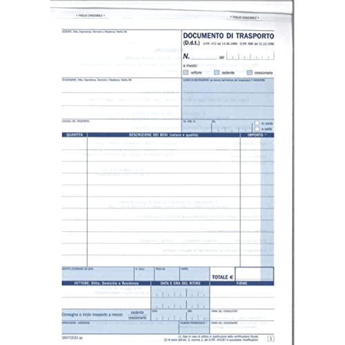 Data ufficio Blocco Documenti di trasporto Triplice copia 215X148mm DU1607CD330 5 Pezzi