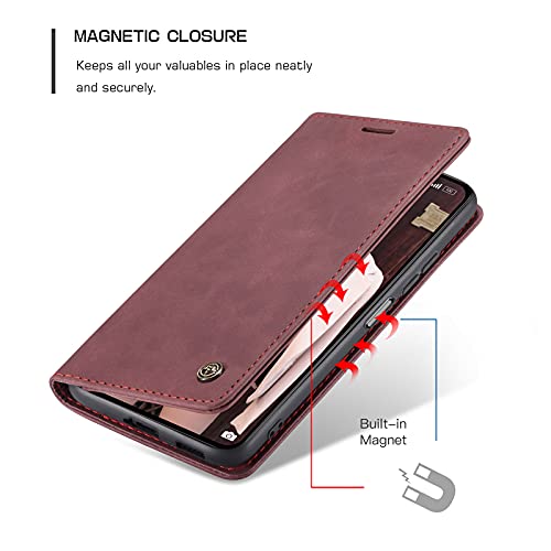 UFinetech Cover per Xiaomi Mi 11 Lite, TPU Pelle Custodia Xiaomi Mi 11 Lite 5G, Sottile Flip Magnetica Adsorbimento Supporto Slot Portafoglio Antiurto AntiGraffio Fotocamera Protettiva Case, Rosso