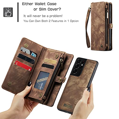 UFinetech Portafoglio Cover Samsung Galaxy S21 Ultra Retro Design Supporto TPU Pelle Flip Magnetica Carta Slot Libro Cerniera Rimovibile Wallet Custodia Samsung Galaxy S21 Ultra Donna Uomini Marrone