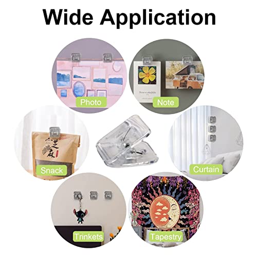 UFURMATE Clip Autoadesive, 24Pcs Clip per Arazzo Da Parete Autoadesive Clip per Foto Adesive Trasparenti Porta Note A Molla In Plastica per L'Home Office