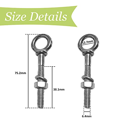 UFURMATE Bulloni A Occhiello, 10Pcs Bulloni A Occhiello con Dadi Bullone Ad Anello Filettato Bullone Ad Anello con Gambo Lungo (1/4"X2")