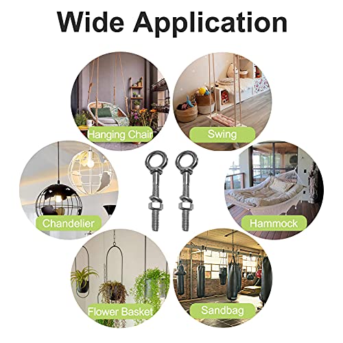 Ampia applicazione I bulloni a occhiello possono essere utilizzati in officina, garage, in casa o in giardino, per appendere tende da sole all'aperto, amache, sedie sospese, altalene, stendibiancheria, sacchi di sabbia, cesti di fiori, ecc.