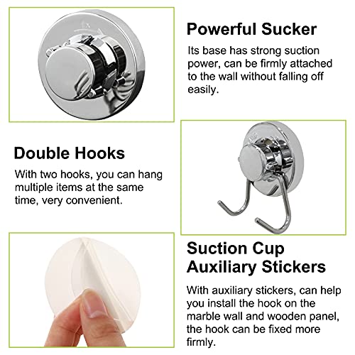UFURMATE 2 ganci a ventosa, in acciaio inox argento, doppio gancio, impermeabile, per accappatoio, gancio per asciugamani da bagno, organizer con adesivi ausiliari per bagno e cucina