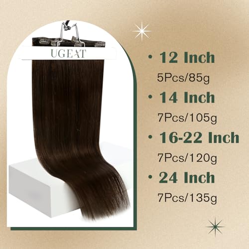 Ugeat Clip Capelli Veri 120g 55cm 7 Pezzi Extension Capelli Remy Clip Castano Scuro Extension Clip Brasiliani Extension Capelli Clip
