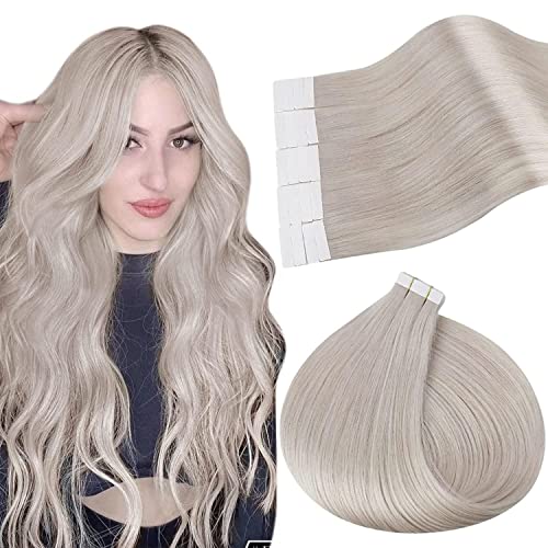 Ugeat Exstescion Capelli Veri Biadesivo 35cm Tape in Human Hair Extensions 50GR/Pack Extension Capelli Veri con Adesivo Bionda Bianca #1000