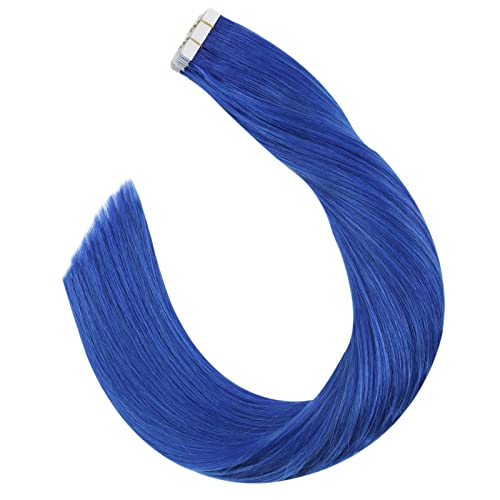 Ugeat Extension Adesive Capelli Veri 60cm Tape Extension Biadesivo Capelli Veri Colore Blu Tape in Human Hair Extensions Biadesive 2.5Grammo/Pezzo Totale 10Pezzi Extension Remy Capelli Umani