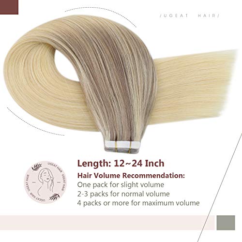 Ugeat Extension Biadesive Capelli Veri 50cm Tape in Extension Bioadesive Remy 20PCS 50G Balayage Biondo Cenere con Biondo Medio a Biondo Platino (#18/22/60)