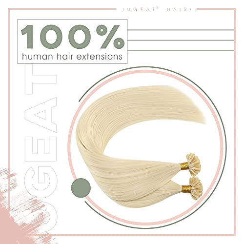 Ugeat Extension Capelli Veri Con Keratina 60cm Exstescion Capelli Veri U Tip #60 Biondo Platino 50Ciocche Extension Cheratina Capelli Veri