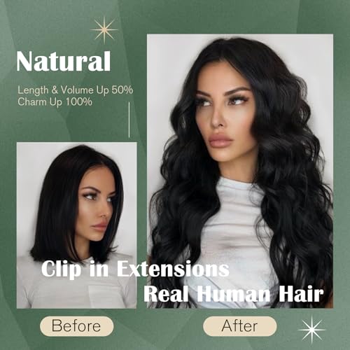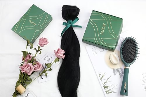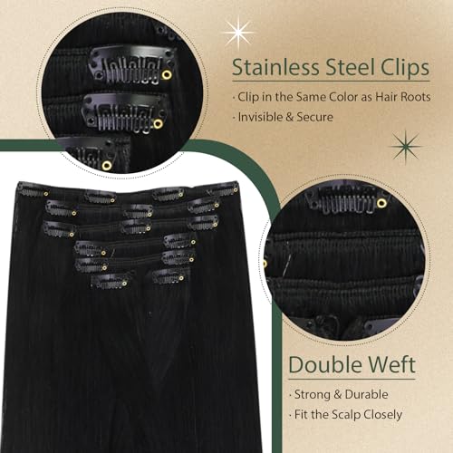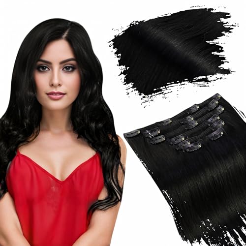 Ugeat Extension Clip Capelli Veri 40cm 120g 7 Pezzi Extension Remy Clip Lisci Capelli Nero Extension Donna Capelli Veri Umani