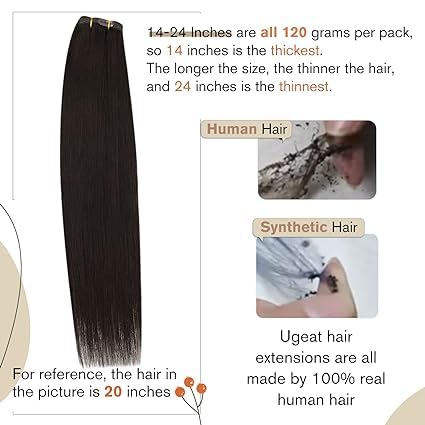 Ugeat Extension Clip Capelli Veri 120g 40cm 7 Pezzi Extension Clip Capelli Umani Lisci Castano Scuro Extension Capelli Remy Clip