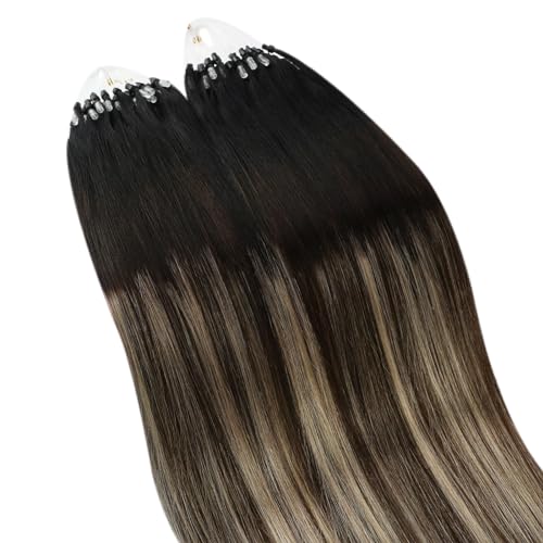 Ugeat Extension Microring Capelli Veri Balayage Neri 45cm Remy Extension Con Microring Extension Micro Loop Da Nero Naturale A Marrone Chiaro Con Biondo Miele 50g 50 Ciocche