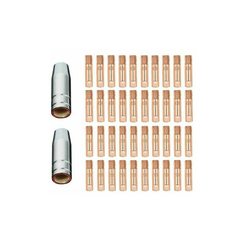 42 accessori per saldatura da utilizzare con la torcia per saldatura MIG MAG AK15/MB15 2 ugelli del gas, 20 punte di contatto da 0,8 mm, 20 punte di contatto da 1,0 mm < br/>Adatto a tutti i dispositivi MIG MAG con torce di saldatura AK15/MB15 di altri produttori Semplice montaggio delle parti soggette ad usura sul bruciatore, non sono necessari attrezzi speciali. Facile, conveniente e veloce Il materiale in rame ha una buona conduttività termica ed elettrica, resistenza alle alte temperature e alla corrosione più stabile, robusto con una lunga durata Numero di pezzi consegnati: 1 set (42 pezzi) Benvenuti