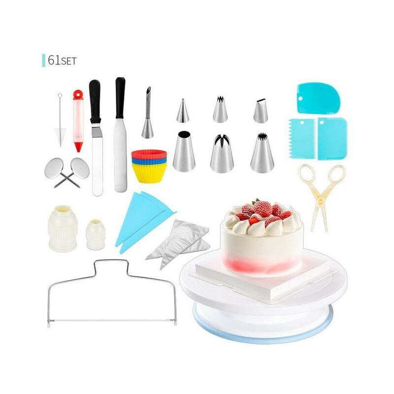 1040gAmbito di applicazione: decorazione per torte, crema, biscotti, ecc.Confezione: in scatolaCaratteristiche:1. Puoi creare facilmente decorazioni delicate e diverse, tra cui cerchi, petali, foglie, fiori e altri disegni diversi per rendere la torta più unica, bella e affascinante2. È un ottimo regalo per tutte le occasioni e un ottimo regalo per i propri cari, amiciLista di imballaggio:61 pz/set: giradischi antiscivolo x1, TPU blu da 12 pollici x1, TPU blu da 14 pollici x1, ugello per tubazioni piccole x4, ugello di laminazione grande x3, forbici in plastica ABS x1, piccoli chiodi di laminazione x2, coppe per muffin in silicone x12, convertitore piccolo x2, pennello triangolare a estremità singola x1, raschietto blu set di tre x 3, Convertitore grande x1, dispositivo di stratificazione a doppia linea x1, borsa PO da 12 pollici x25, manico in gomma da 6 pollici spatola dritta x1, manico