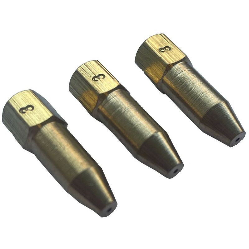 Set di 3 ugelli per torcia a gas. Compatibile con le nostre torce Kemper BI-Gas. Ideale per regolare la portata del gas della vostra torcia. Portata del gas: 40 litri all'ora. Dimensioni: Ø 6 x 100 mm.