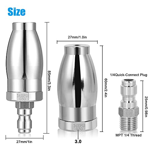Pressione massima fino a 3600 Psi: la pressione massima è fino a 3600 PSI, galloni al minuto 3,0 (3 GPM), dimensione dell'orifizio dell'ugello 3,0, è adatto per acqua calda e fredda. La temperatura massima di esercizio è di 60 ° C (150 ° F