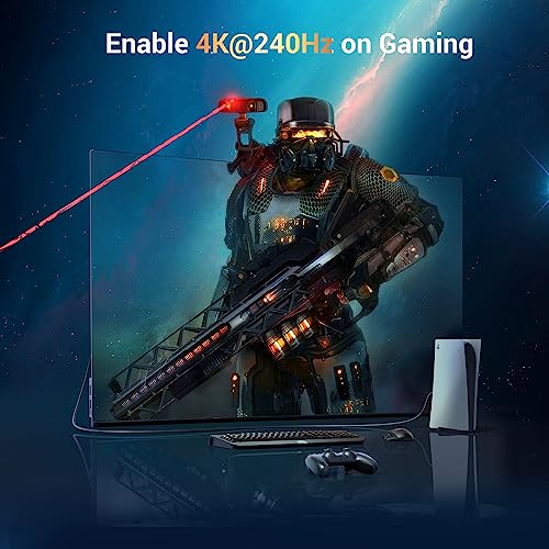 [ Supporta VRR ] Questo cavo HDMI 8K supporta UHD-II, video 3D, Dynamic HDR/HDR10+, QFT e ALLM, VRR. L'ultima modalità di gioco supporta la frequenza di aggiornamento variabile (VRR) e massimizza il valore della scheda grafica e della CPU. Quando si cambiano le scene, la frequenza di aggiornamento cambia di conseguenza per ottenere un'immagine più fluida e dettagliata.