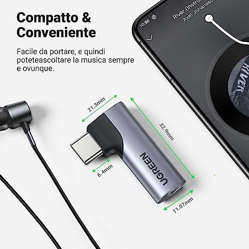 UGREEN Adattatore USB C a Jack 3.5 mm per Cuffie 90 Gradi Adattatore Type C Jack con DAC Chip Compatible con Galaxy S23 S22 S21 Ultra S20 FE A53 Note 20 Pixel 7 Pro 6a Xiaomi 11T OnePlus 10T (Grigio)