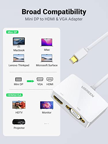 UGREEN Adattatore Mini Displayport Thunderbolt a HDMI VGA Mini DP HDMI VGA Compatibile con Macbook Pro Air iMac Microsoft Surface Pro Thinkpad Dell XPS 13, Bianco