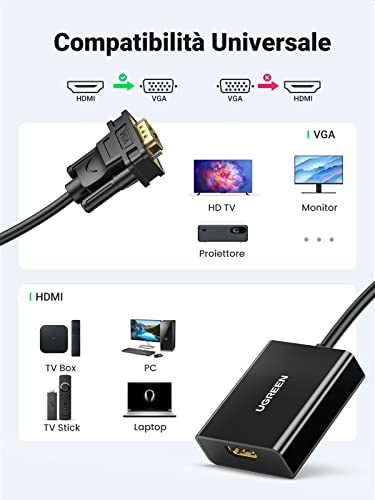 UGREEN Adattatore HDMI Femmina a VGA Maschio 1080P 60Hz Trasmette Audio Video, Convertitore HDMI VGA per TV Stick, Google Chromecast, Intel Computer Stick, TV Box, Cavo Alimentazione Micro USB Incluso