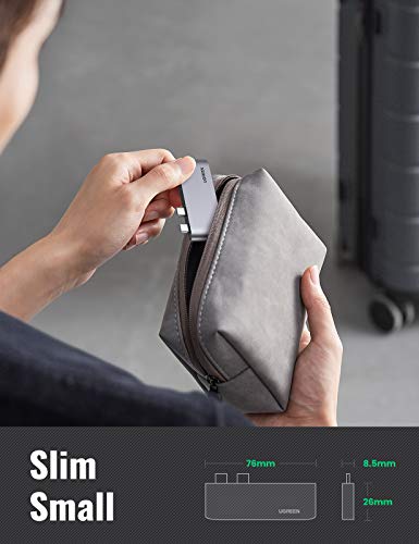 [ Elegante & Mini ] Il design ultra sottile e piccolo, 7,6 * 2,6 * 0,85cm, facile da trasportare. Il robusto guscio in alluminio migliora le prestazioni di dissipazione del calore e la resistenza all'usura, il che renderà più sicuro l'uso di questo dock USB C.