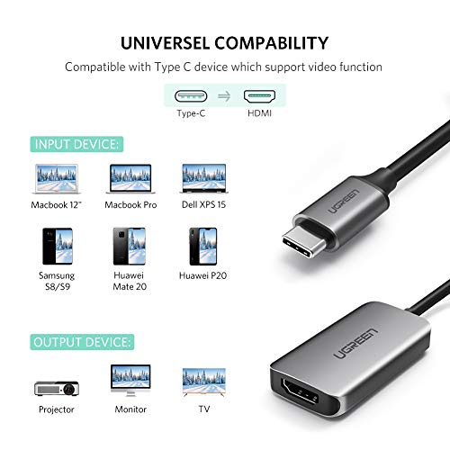 UGREEN Adattatore USB C a HDMI 4K Ultra HD USB 3.1 Tipo C a HDMI per Huawei P30 Pro P20 P20 Pro Mate 10 Samsung Note 8 S9 S8 S8+ Lumia 950 HTC10 MacBook MacBook Pro 2017 iMac 2017 Dell XPS 13/15 etc.