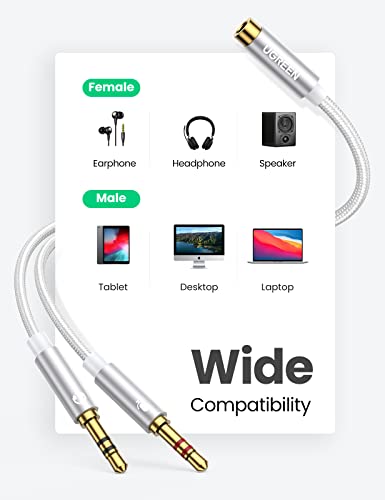 Ampia Applicazione: UGREEN l'adattatore per cuffie può trasformare il singolo jack da 3,5 mm in due jack (auricolare e microfono).