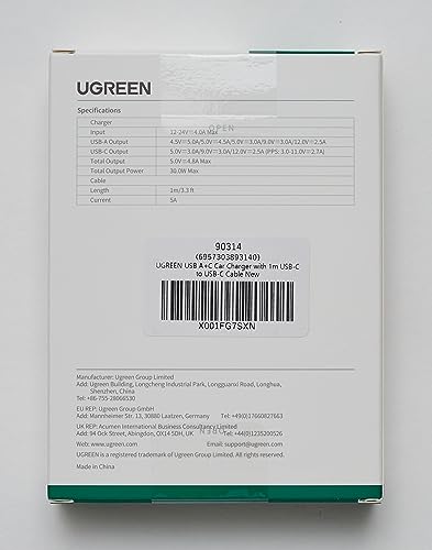 UGREEN Caricabatteria USB C da Auto 30W con 1M Cavo USB C a USB C, Caricatore Accendisigari 20W Compatibile con iPhone 14/13/12 Pro Max SE 2022, iPad Pro/Air/Mini, Galaxy S22 S21