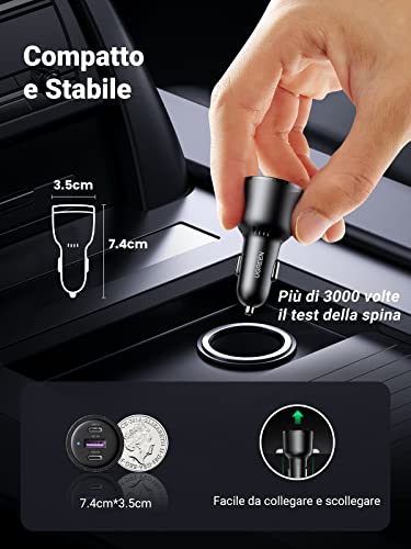 UGREEN Caricabatteria USB da Auto 69W USB C PD 65W e 20W e QC 3.0, Caricatore USB per Accendisigari Compatibile con MacBook Pro Air M1, iPad Pro iPhone 14 13 12 Pro Max SE 2022 Galaxy S22, Pixel 7