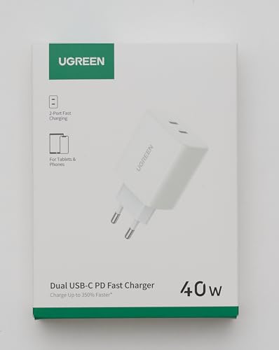 UGREEN 20W+20W Caricatore Doppio USB C, Caricabatterie USB C 40W Power Delivery Compatibile iPhone 15 Plus Pro Max/14/13/12, Pixel 7/6a, iPad Pro/Air/Mini, Xiaomi Mi 9/Note 9, Galaxy S22/S21/A52s