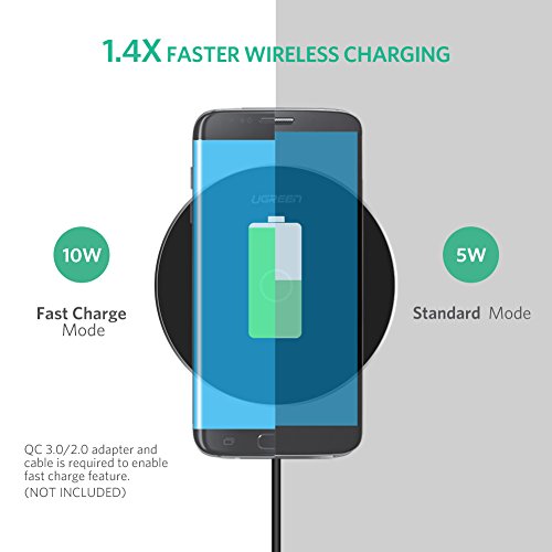 UGREEN 10W Caricatore Wireless, QC 2.0 Ricarica Rapida 10W Compatibile per Samsung Galaxy S9 S8 Plus S7 Edge Note 8 Note 5, Standard 5W per iPhone X iPhone 8 8 Plus, ECC